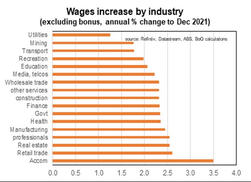 The big picture is that despite the strong demand for workers across most industries there are few sectors where wages growth is above 3%. And there are no states where wages growth was above 3% in 2021. This included Western Australia where the unemployment rate is already in the 3’s. Indeed, only five industries had wages growth of above 2.5% in 2021 and none of the five largest states. The economic fundamentals do point to stronger wages growth is on the way. But at the end of last year wages growth was still too low.