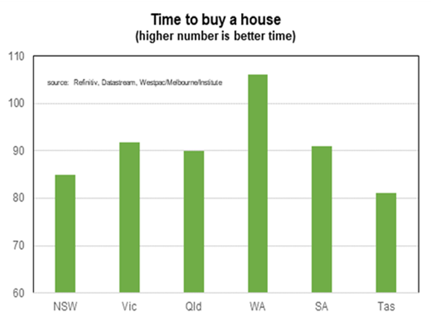 Relative to Sydney, the average house price in Hobart is expensive by the standards of the past 40 years. Melbourne and Canberra house prices are about the mid-point of the range they have been relative to Sydney over the past fifty years. Brisbane, Adelaide and Perth appear cheap. Another indicator of affordability is the proportion of income spent on meeting mortgage payments. Sydney is the most expensive by that measure. Melbourne, Hobart and Canberra the next highest. Perth and Darwin the lowest, with Adelaide and Brisbane in between.