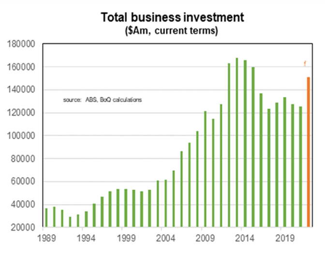 - Business investment is on track to rise strongly in Australia this year;