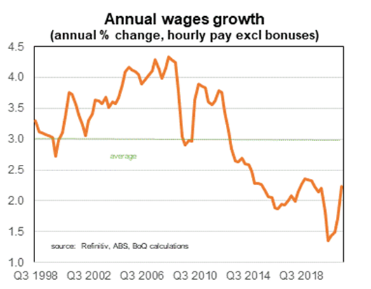 The September quarter wages data was for financial markets the most eagerly anticipated piece of economic data for the remainder of 2021. The outcome (measured as excluding bonuses) came in at a 0.6% rise (2.2% over the past year), close to expectations. That was a pretty good outcome given that about half the country was in lockdown for much of the third quarter. But the quarterly increase was in line with the pace recorded in the first half of 2021. Part of the pickup of wages will be ‘catch up’, a payback for the wage freezes last year when uncertainty about the pandemic impact was at its peak.