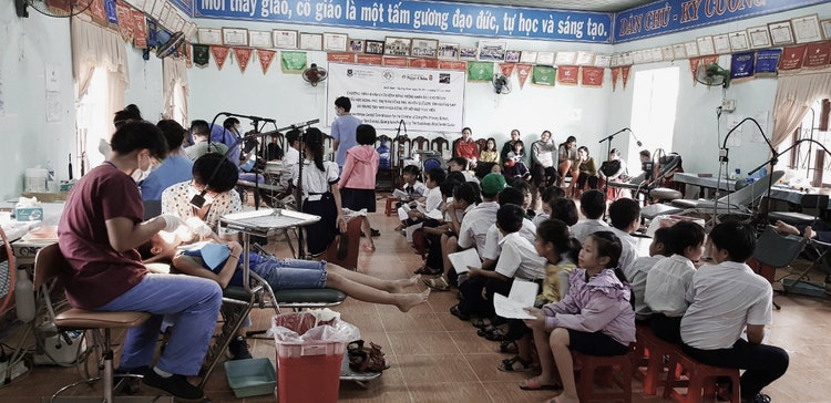 Instead of the usual rotational service, EMW decided our team was needed at the rural Dong Phu Primary School in the Que Song District of the Quang Nam Province. EMW reported that more than 70% of students were from an impoverished household and over 80% had never received access to oral health services. These statistics were affirmed by the vast majority of students who had dental decay.